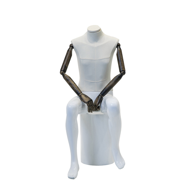 पूर्ण शरीर के साथ बैठे हुए पुरुष मॉडल आराम से बैठे हुए आसन को परिष्कृतता के स्पर्श के साथ जोड़ता है।यह मॉडल एक सहज शैली की भावना को उजागर करता है, इसे आकस्मिक और आरामदायक कपड़ों या जीवन शैली उत्पादों को प्रदर्शित करने के लिए एक आदर्श विकल्प बनाता है।